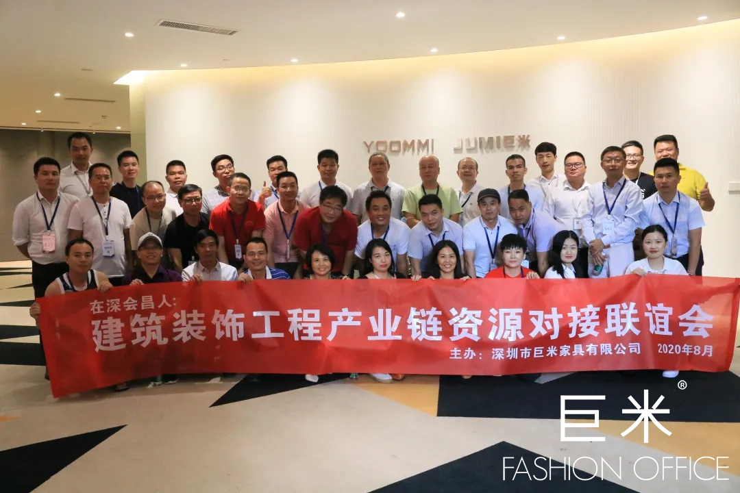 2020年8月9日下午,一場江西會昌家具人的聯誼會在深圳市宏發創新園順利舉行。本次活動由深圳市巨米家具有限公司主辦,30余家相關行業公司近40名嘉賓代表參加。會昌家具人在巨米聚首,大家本著學習交流、互利共贏的目標進行了深度的鏈接,本次聯誼會取得了圓滿成功。